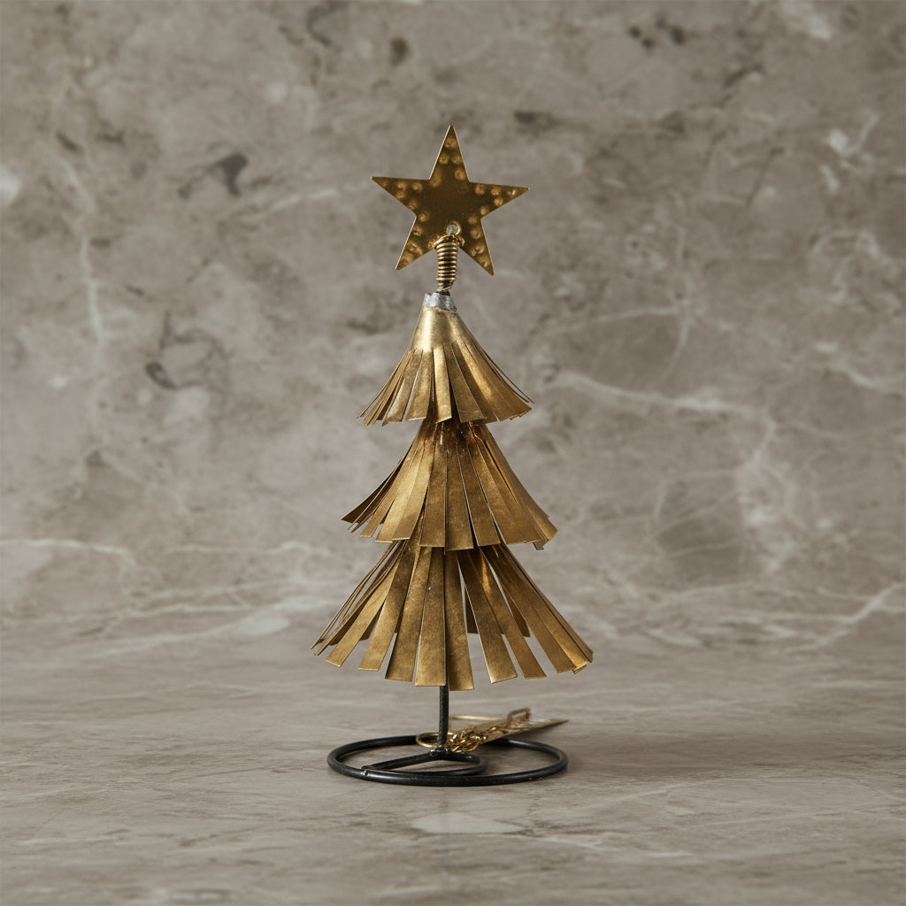 Juletre laget av messing og pyntet med en messingstjerne på toppen.