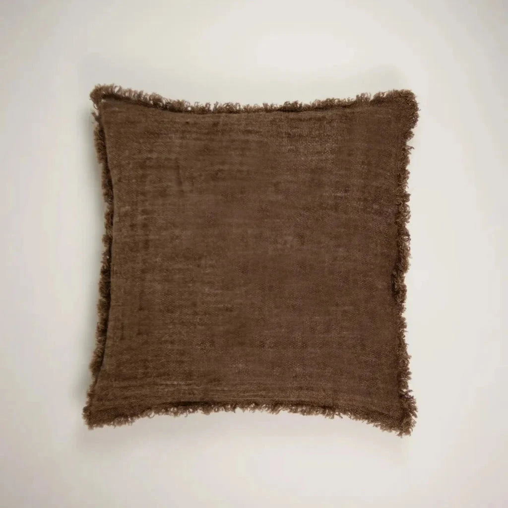 Putetrekk i lin med bomullsfôr og treknapper på baksiden.