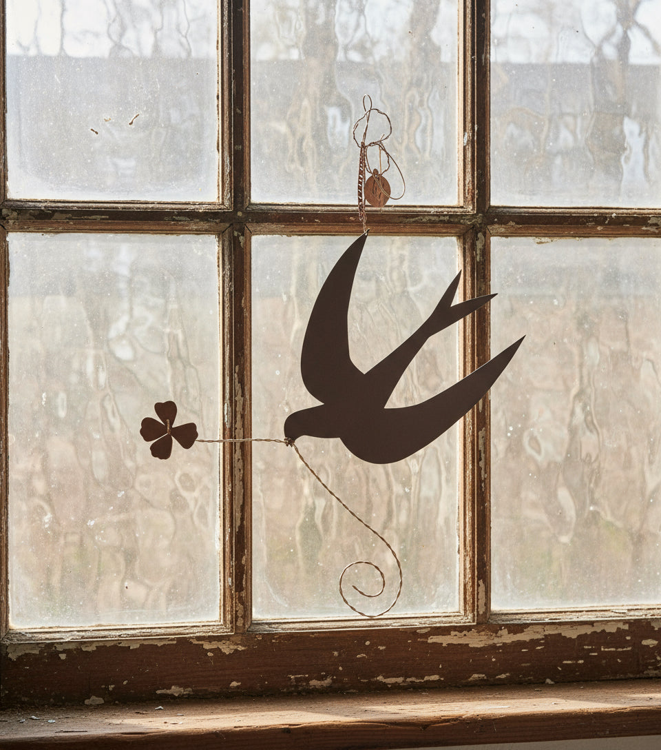 Delikat og full av mening, denne håndlagde pynten forestiller en elegant svale med en firkløver i nebbet. Med utskårne detaljer i sølvtoner og en varm messingfinish, kombinerer den rustikk sjarm med tidløs eleganse. Den er perfekt til å henge på juletreet, i et vindu eller som en dekorativ detalj året rundt.