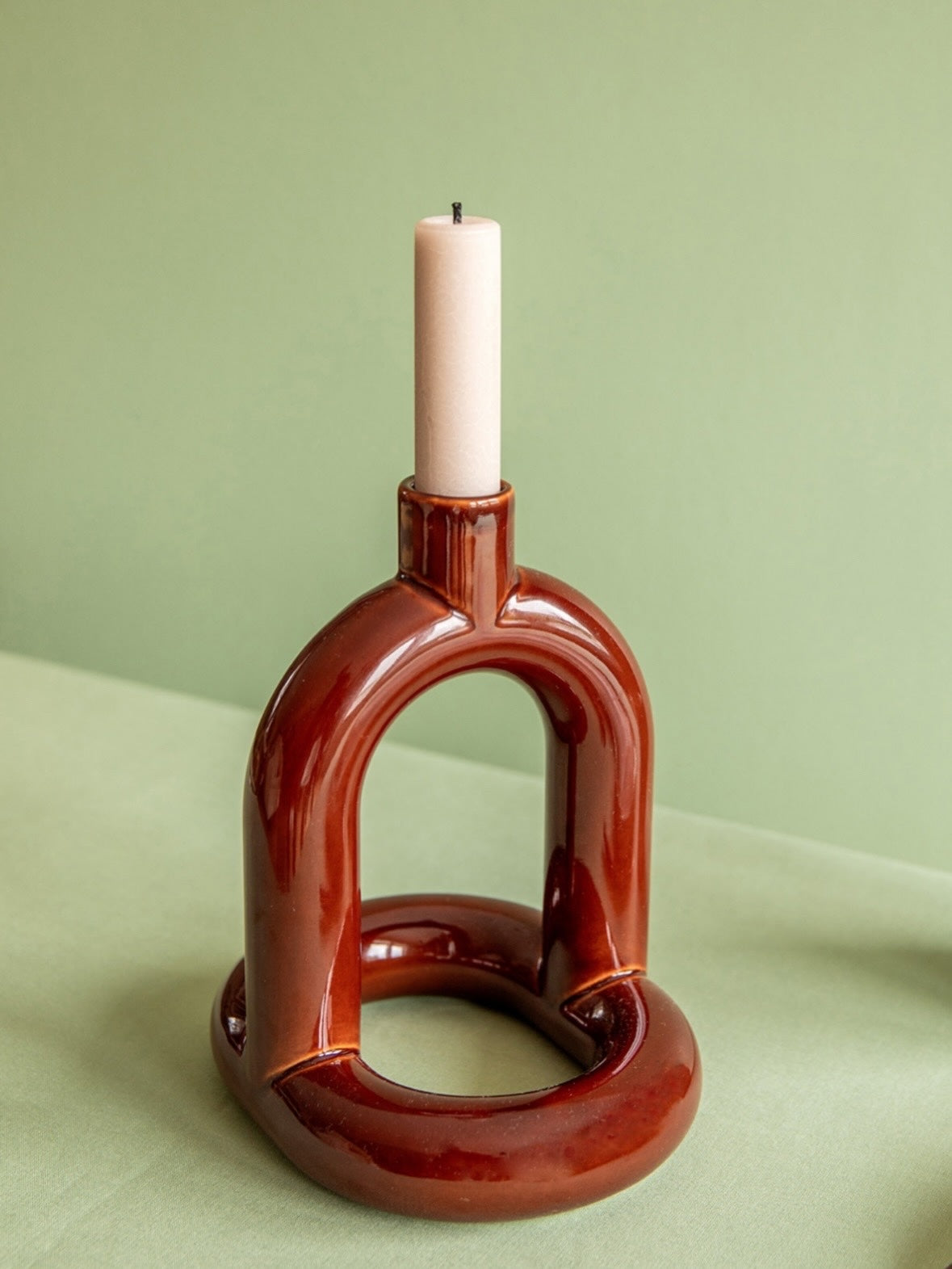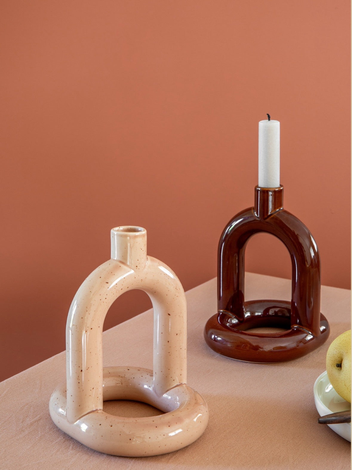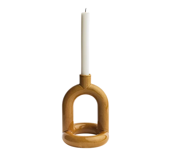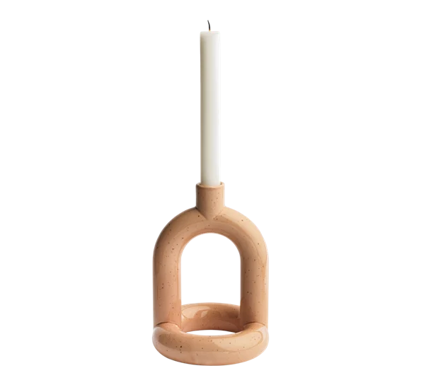 I 2025 introduserer vi Kapp lysestake med ny, blank tekstur og i tre nye farger: Mustard, Pink Speckle og Brown.