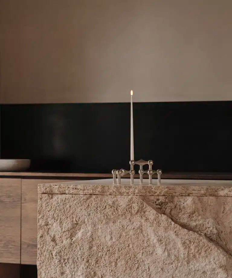 Den forkrommede Nagel-lysestaken er den aller første og originale fargen i STOFF Nagel-designet. I dag regnes den fortsatt som et samleobjekt i hjem over hele verden – et personlig statement og en formbar skulptur klar til å anta formen av eierens unike kreativitet. Lag og kombiner den med andre STOFF Nagel-design og bruk den med levendeys, eller la den være som en dekorativ skulptur.