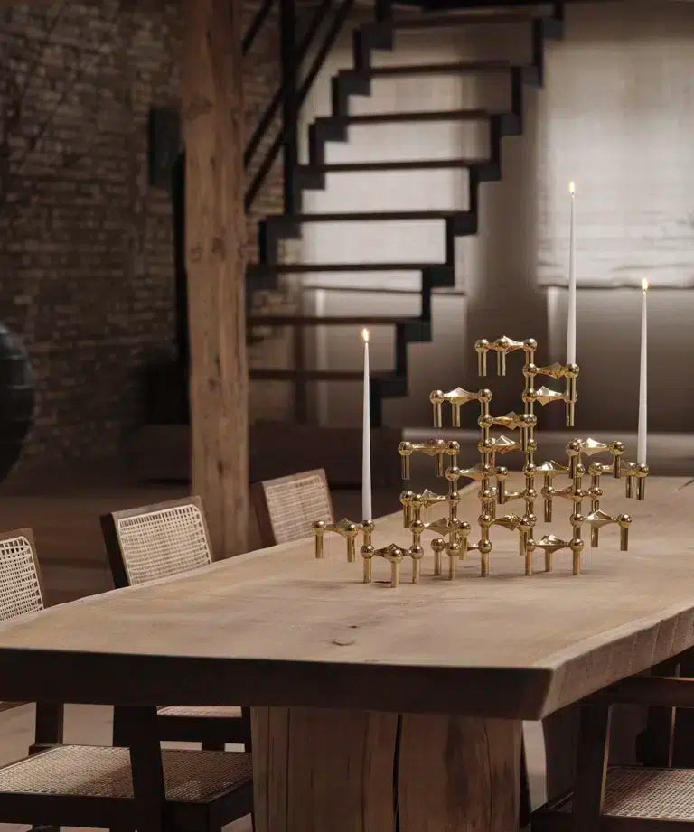 Laget av solid messing den lysestaken er det mest eksklusive medlemmet av STOFF Nagel-familien.