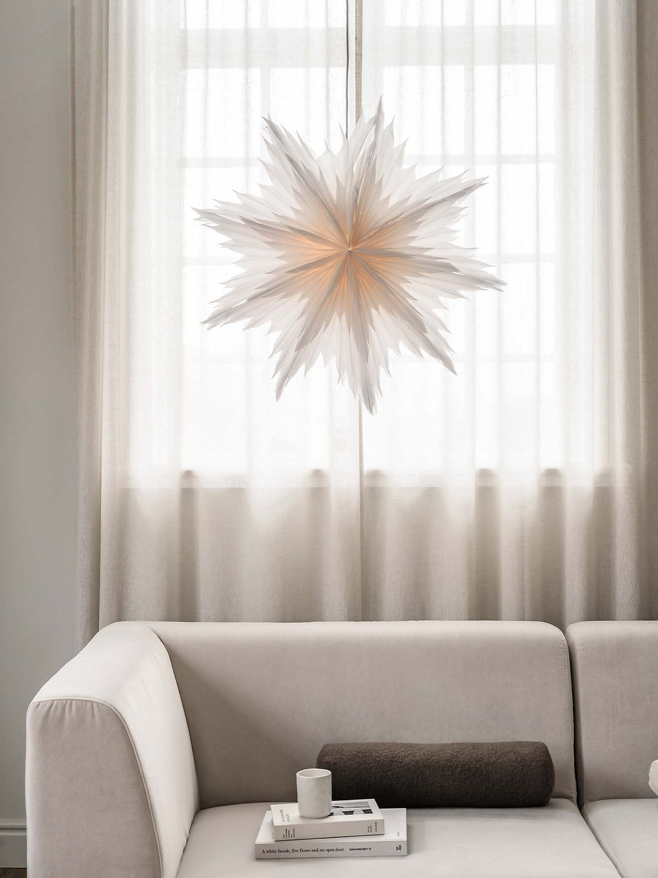 Hver stjerne er håndlaget av halvtransparent papir av høyeste kvalitet, og leveres i en elegant hvit gaveeske.