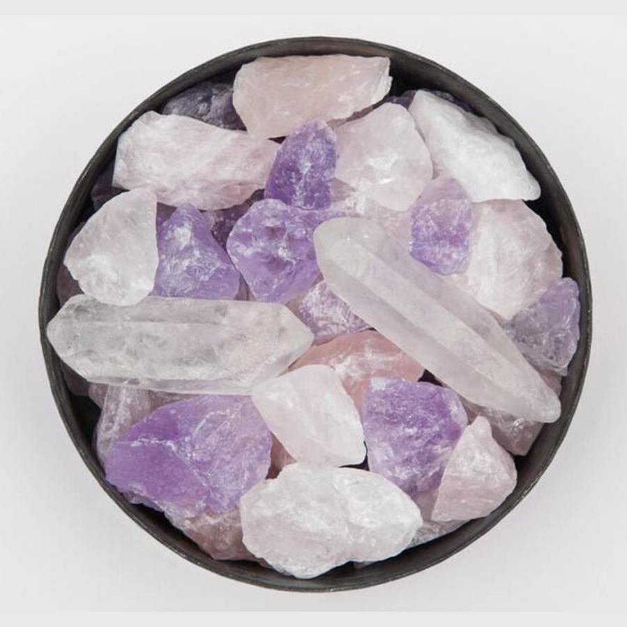 Håndlaget i de franske Alpene, Mad et Len presenterer et eksklusivt potpurri-konsept bestående av rosa krystaller i en skulpturell svart smidd boks.