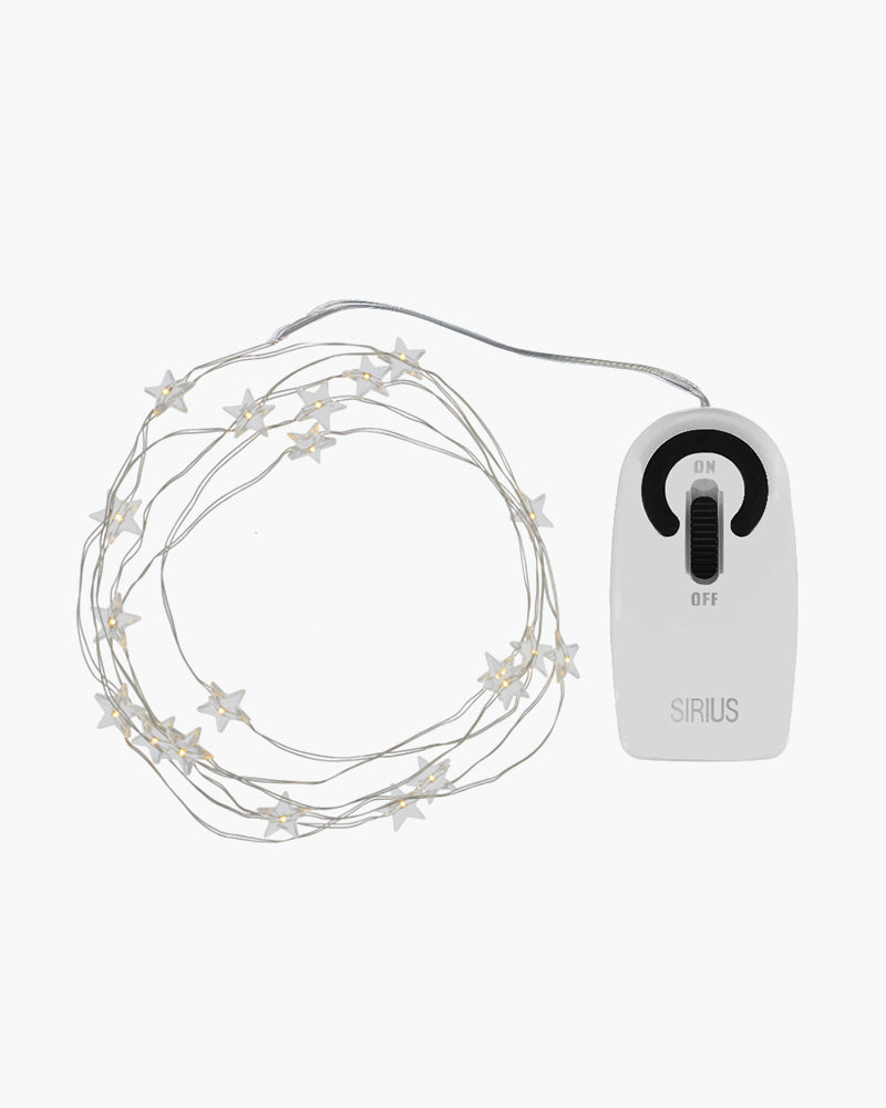 Trille 20 er en lyslenke i sølv med små ledlys i stjerneform